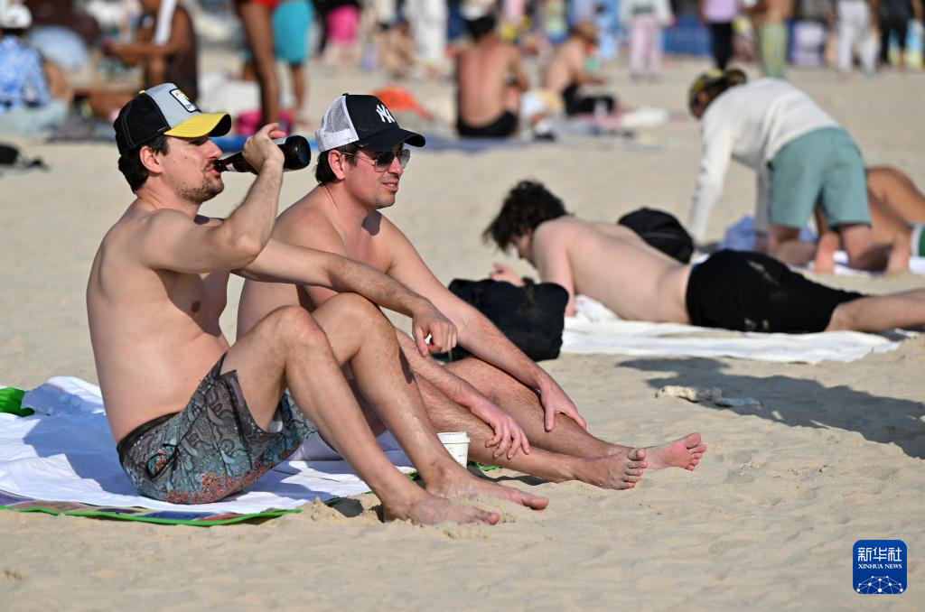 1月11日,外国游客在三亚大东海游玩。新华社记者 郭程 摄